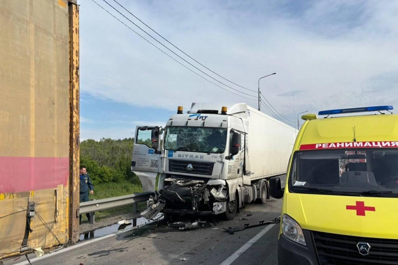 На омской трассе столкнулись фуры и парализовали движение на два часаГрузовые машины превратились в груду металла