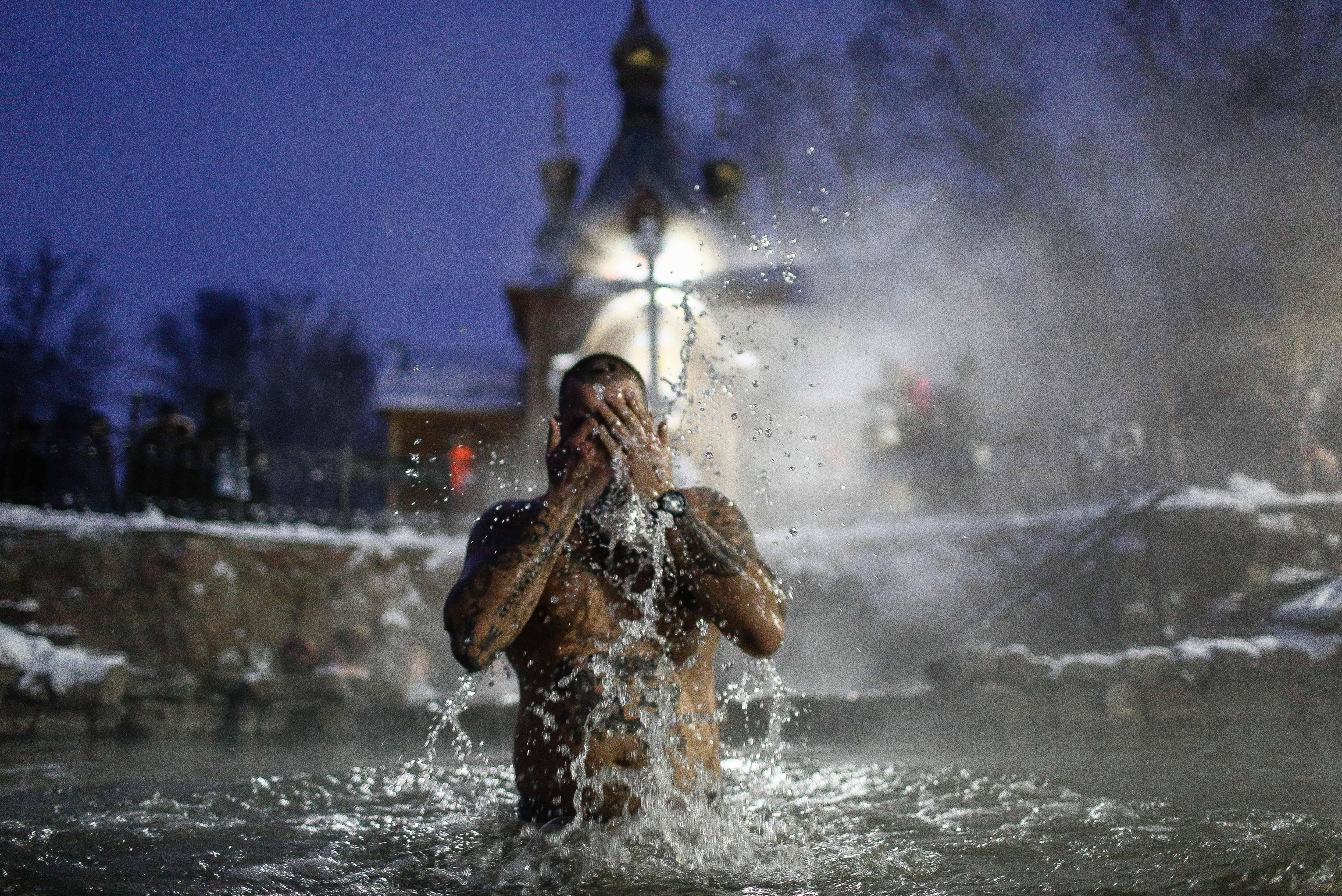 «С головой нырнешь — смоешь все грехи!» Как россияне окунались в прорубь на Крещение — кадры со всей страныКто-то так и не решился окунуться целиком, а кому-то нипочем ни ледяная вода, ни метель