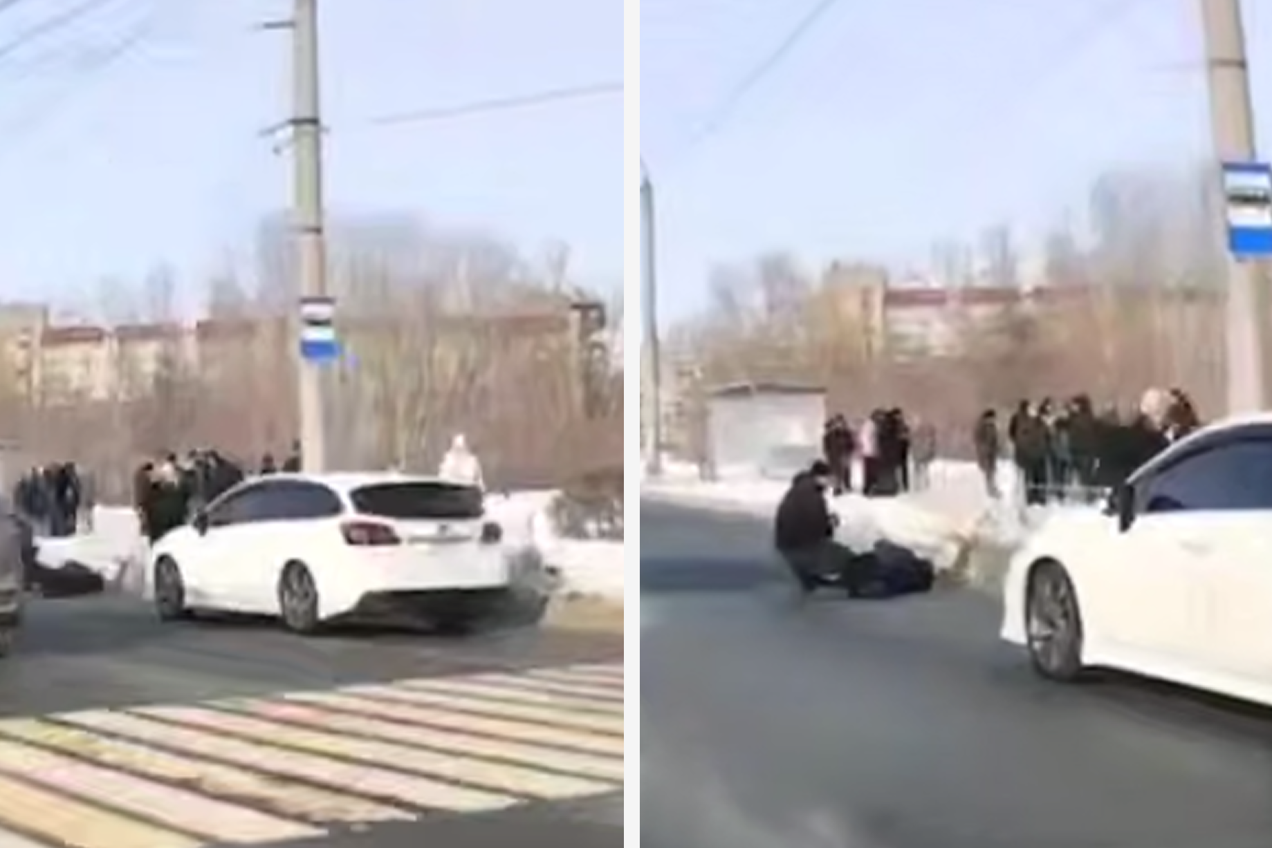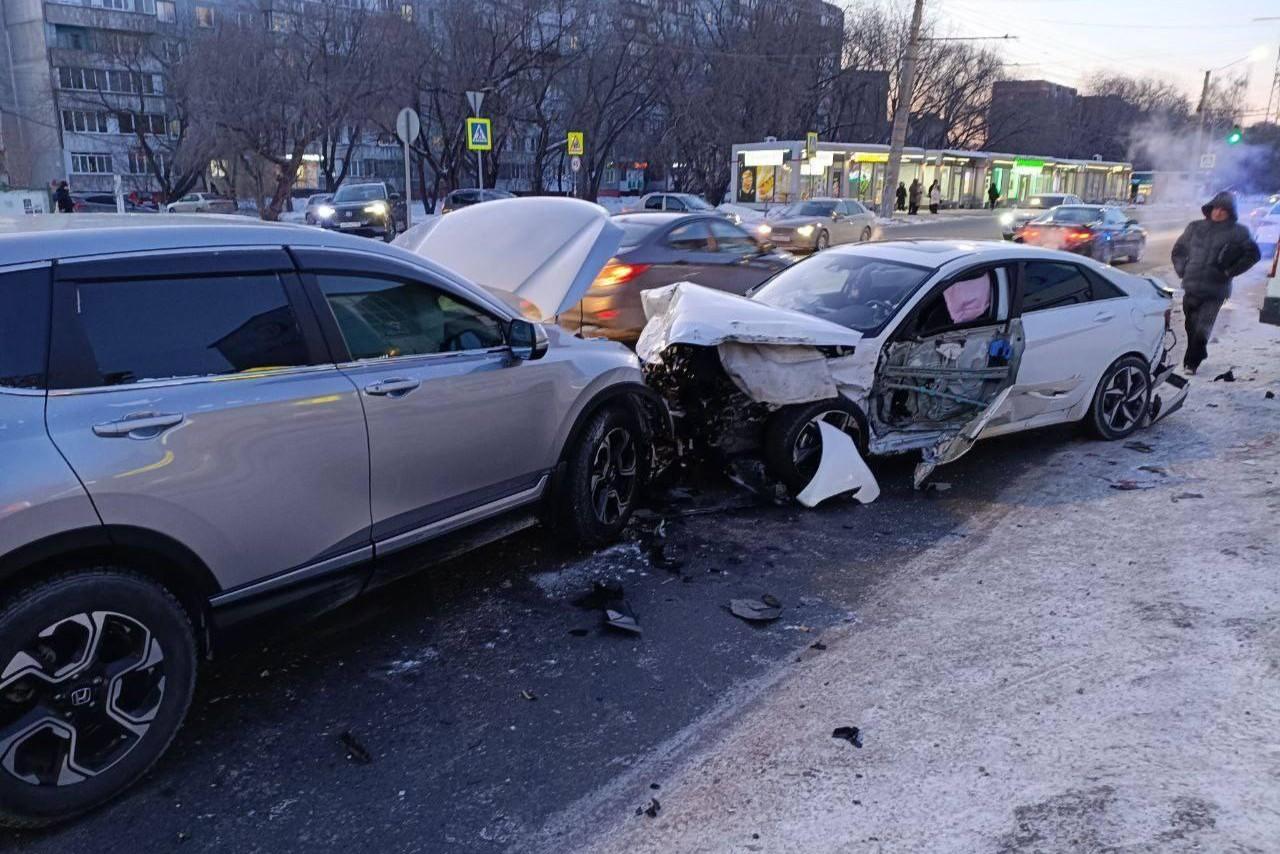 В Амуре пожилой водитель сбил девушку и парня на пешеходном переходе — фотоПострадавших увезли в больницу