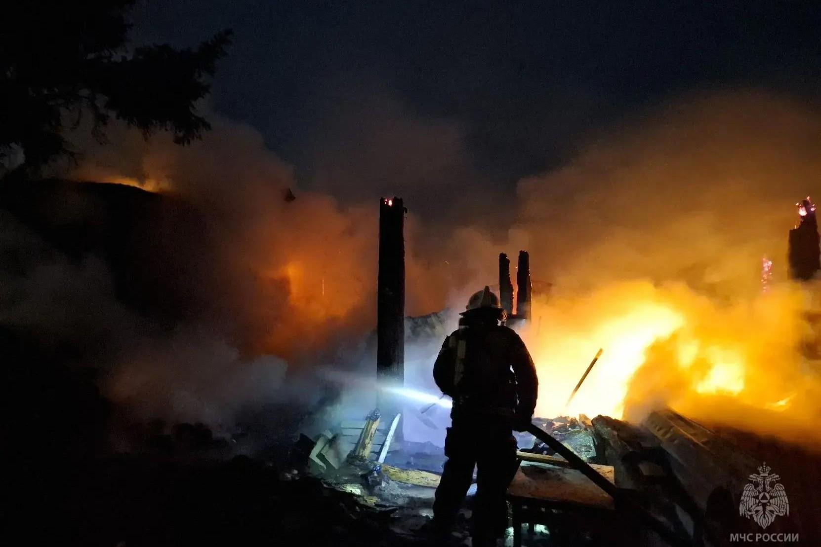 Мужчина пострадал во время страшного пожара в Омской области — видеоЛюди смогли покинуть горящий дом самостоятельно